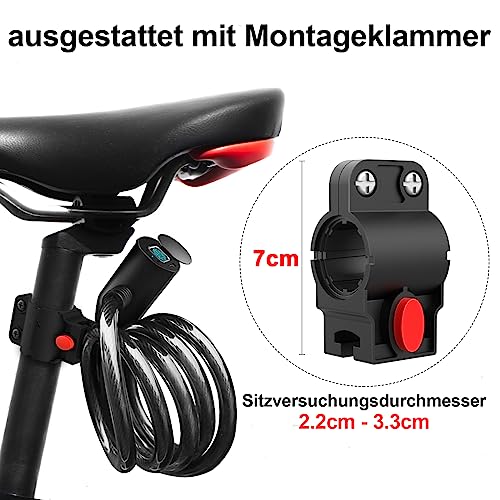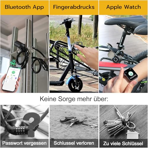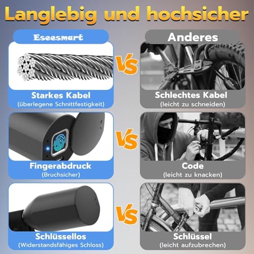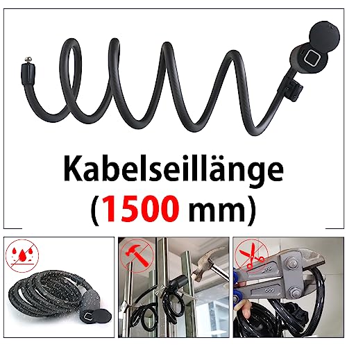 Eseesmart - قفل ببصمة الإصبع وتطبيق لبصمة الإصبع، طويل 1500 ملم/12 ملم، مقاوم للماء للدراجة والدراجة ثلاثية العجلات والسكوتر