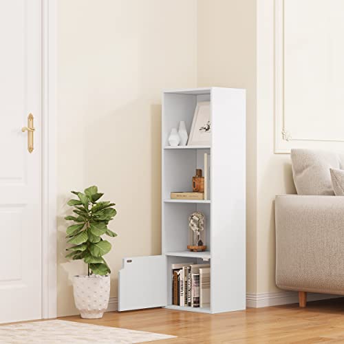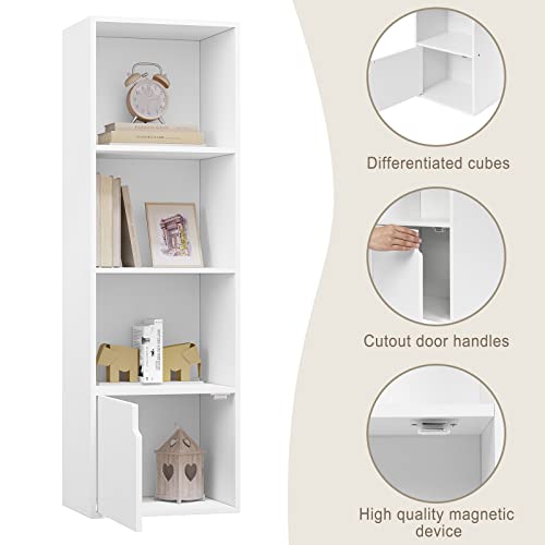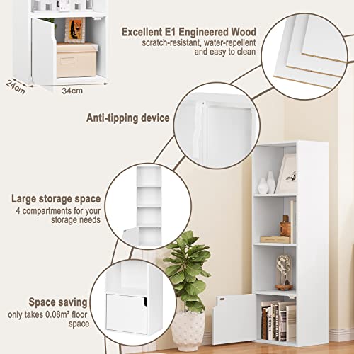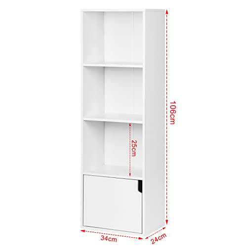 eSituro - خزانة كتب موديل SBKC0040 ب4 أرفف، مكعب تخزين ب3 أقسام مفتوحة و1 دولاب ملابس من ايسيتورو، لون أبيض/ خشب بلوط فاتح، بأبعاد 34 × 24 سم × 1.06 م