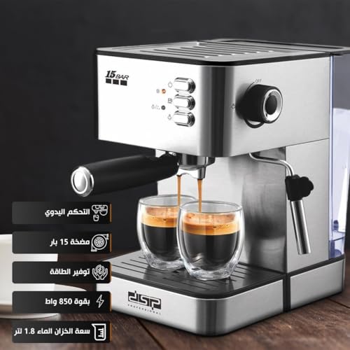 Generic - ماكينة تحضير الاسبريسو والكابتشينو - استخراج عالي الضغط 15 بار، تصميم فاخر من الستانلس ستيل مع صانع رغوة حليب مدمج - جرب طعم المقهى في المنزل! (DSP)