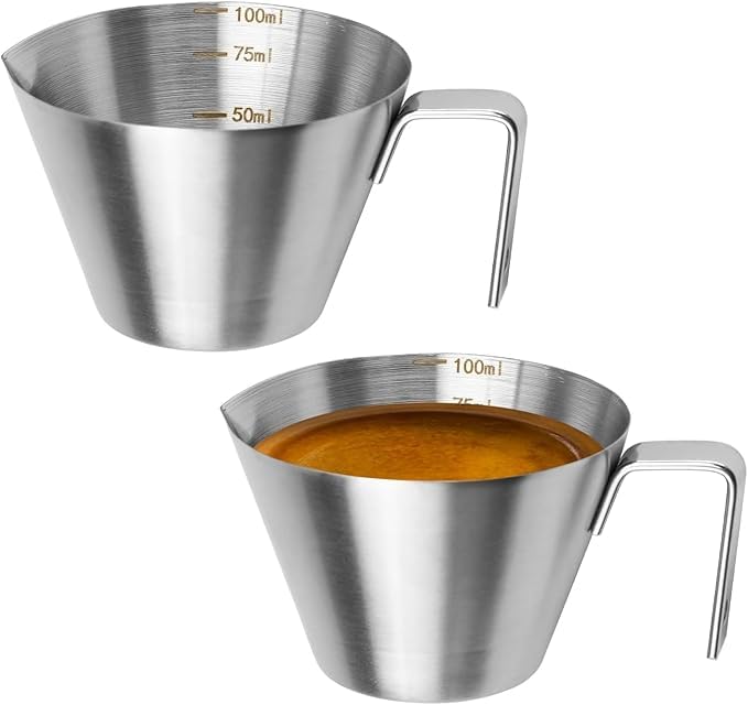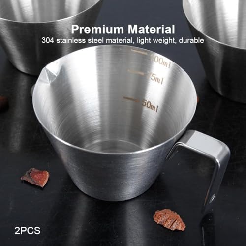 Generic - اكواب إسبريسو، قطعتين من كوب الإسبريسو من الفولاذ المقاوم للصدأ مع علامات قياس وفم نسر، كوب صب إسبريسو سعة 100 مل، اكسسوارات قهوة باريستا