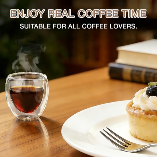 - كوب قهوة أنيق بسعة 80 مل، كوب اسبريسو مزدوج الجدار بسعة 80 مل مثالي للإسبريسو المكثف. توفر لك أكواب الإسبريسو تجربة طعم فريدة تدلل حواسك وأكواب الاسبريسو العصرية تمنحك لحظة من الاسترخاء النقي