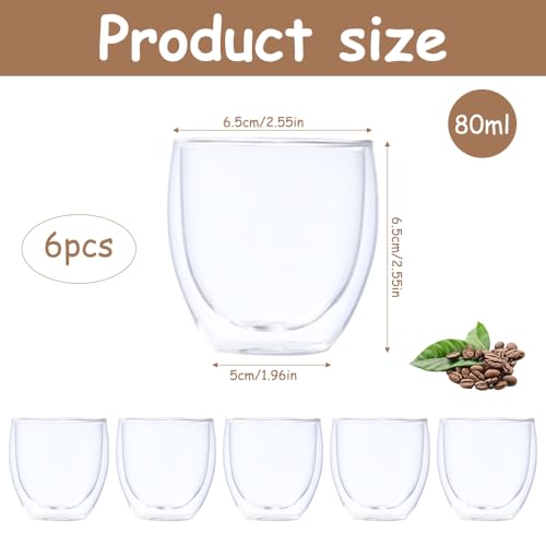 XEERUN - طقم أكواب اسبريسو بزجاج مزدوج للموكا مصنوعة من زجاج البوروسيليكات، أكواب حديثة وآمنة للغسل في غسالة الأطباق للقهوة وكابتشينو ولاتيه ماكياتو، 80 مل، 6 قطع