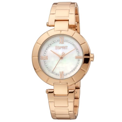 ESPRIT - ساعة للنساء موديل ES1L287M0095 اسبريت، تناظري، بمينا أبيض، بسوار ذهبي وردي
