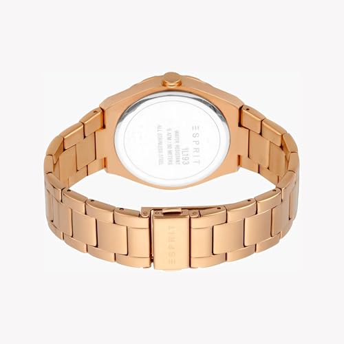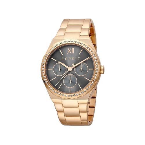 ESPRIT - ساعة للنساء موديل ES1L193M0075 اسبريت، تناظري، بمينا رمادي، بسوار ذهبي وردي