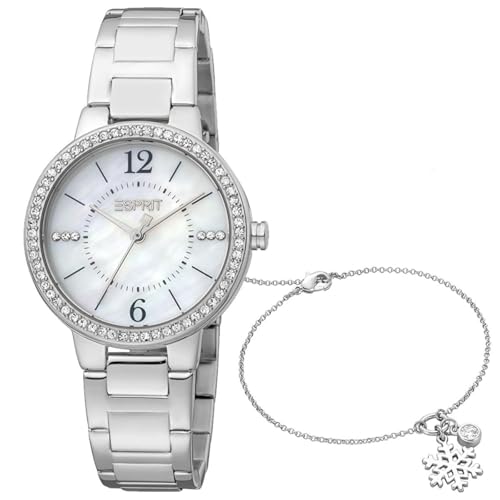ESPRIT - ساعة للنساء موديل ES1L228M2085 اسبريت، تناظري، بمينا أبيض، بسوار فضة