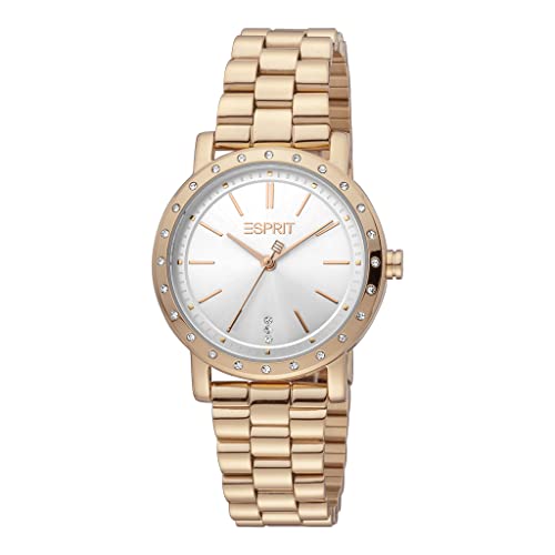 ESPRIT - ساعة للنساء موديل ES1L298M0075 اسبريت، تناظري، بمينا فضة، بسوار ذهبي وردي