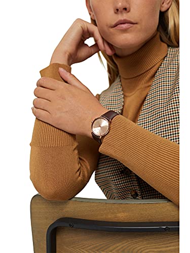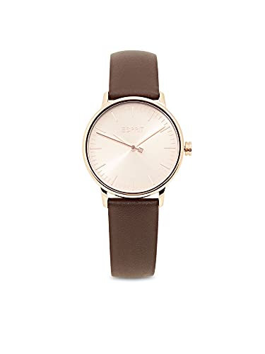 ESPRIT - ساعة جلد دائرية انالوج بعقارب ومينا روز جولد للنساء من اسبريت - بني