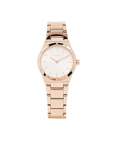 ESPRIT - ساعة دائرية ستانلس ستيل انالوج بعقارب مزينة بفصوص زركونيا للنساء من اسبريت - روز جولد