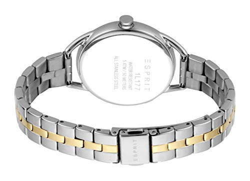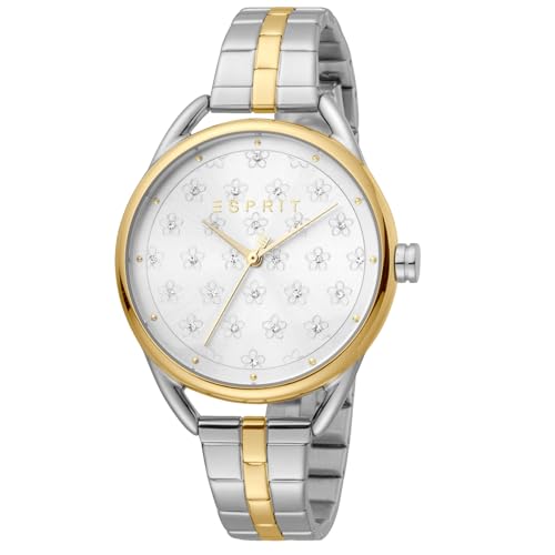 ESPRIT - ساعة يد دائرية بعقارب من الستانلس استيل ومينا منقوش بمؤشرات بلونين للنساء من اسبريت - فضي