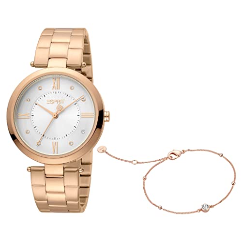 ESPRIT - ساعة بحركة كوارتز وعرض انالوج وسوار ستانلس ستيل حريمي بلون ذهبي وردي من ايسبريت موديل ES1L252M0035