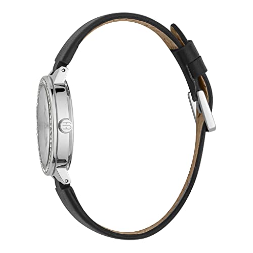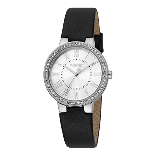 ESPRIT - ساعة للنساء بسوار جلد اسود من اسبريت, فضي، انالوج