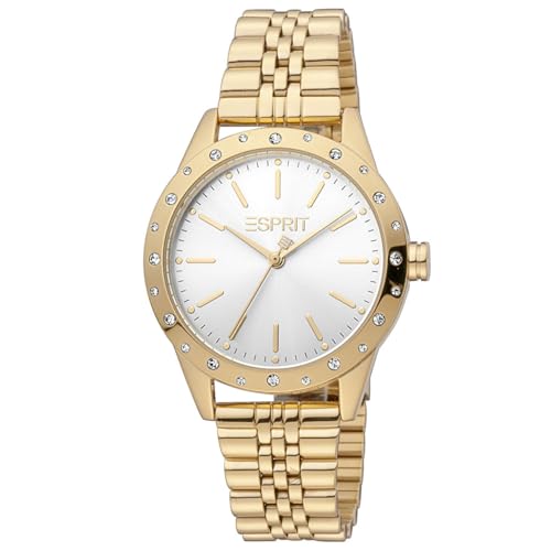 ESPRIT - ساعة من اسبريت للنساء موديل ES1L302M0065، انالوج، بمينا فضي، بسوار ذهبي