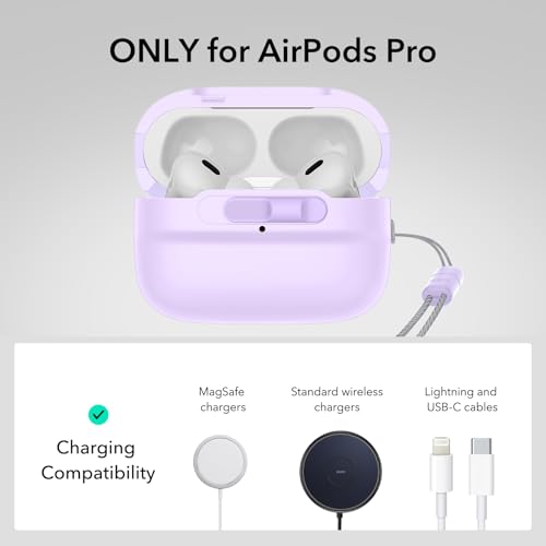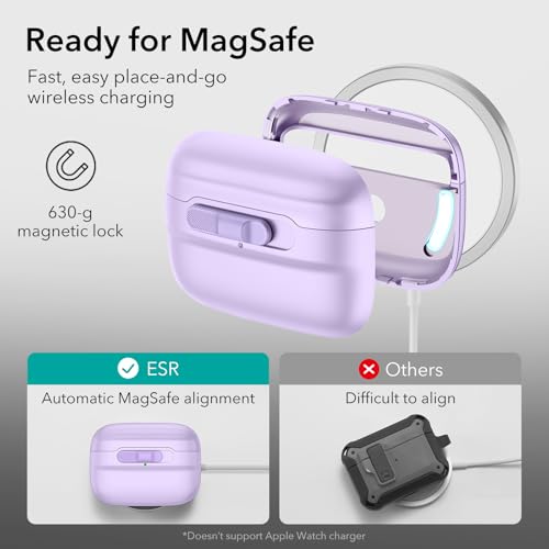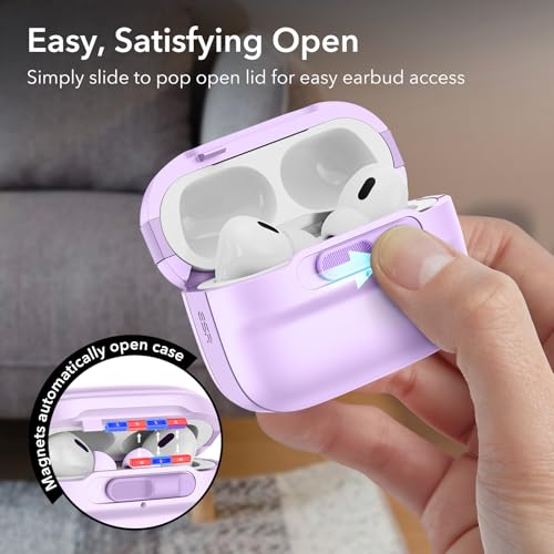 ESR - جراب حماية لسماعات ايربودز برو 2 (كابل USB-C أو اللايتنينج)، متوافق مع ايربودز برو الجيل الثاني والأول (2023 و2022 و2019)، ومتوافق مع ماج سيف، بقفل غطاء مغناطيسي كامل للحماية من السقوط مع حبل من اي اس