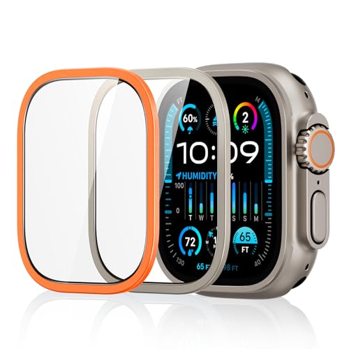 ESR - شاشة حماية لساعة آبل ألترا 2/1 مقاس 49 ملم (2023/2022، 49 ملم) من اي اس ار، حماية من الدرجة العسكرية من الزجاج المقوى مع إطار من الفولاذ مقاوم للصدأ، مقاوم للخدش، قطعتين، لون تيتانيوم برتقالي