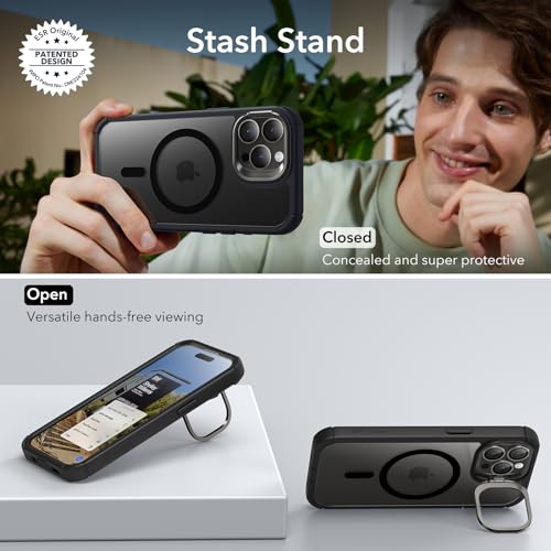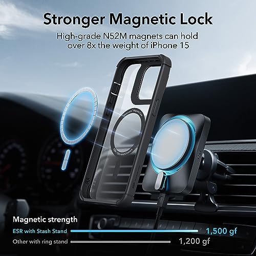 ESR - جراب لموبايل ايفون 15 برو ماكس من اي اس ار، يدعم ماج سيف، جراب مضاد للصدمات لكامل الجسم، حماية من الدرجة العسكرية، جراب مغناطيسي لموبايل ايفون 15 برو ماكس مضاد للصدمات بمسند (هالو لوك)، لون أسود شفاف