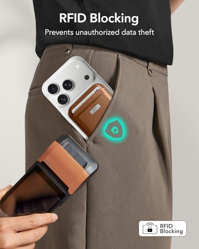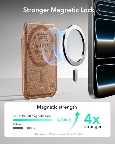 ESR - ESR محفظة ماج سيف مع خاصية فايند ماي وظيفيتي، حامل 5 بطاقات، محفظة مغناطيسية قوية لايفون، تتبع محفظة، لسلسلة ايفون 16/15/14/13/12، غير متوافقة مع 13/12 ميني، بني
