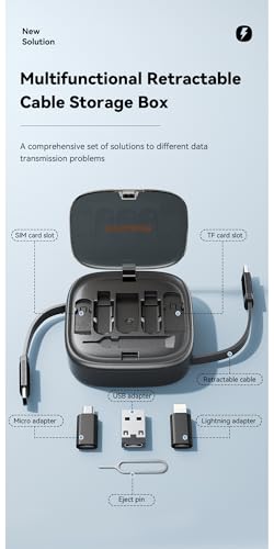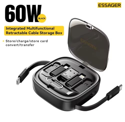 ESSAGER - ايساجر كيبل USB C الى نوع C PD 60 واط يدعم الشحن السريع ونقل البيانات، سلك متعدد الوظائف بطول 1 متر قابل للسحب مع صندوق تخزين حامل [1 كمية]