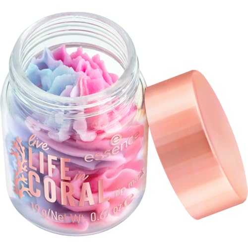 Essence - ماسك شفاه لايف ان كورال من ايسنس، رقم 01، متعدد الألوان، مغذٍ وطبيعي ونباتي، خالٍ من البارابين وجزيئات البلاستيك الدقيقة والنانو، عبوة من 3 قطع (3 × 19 جم)