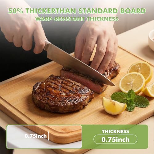 - سهل التنظيف مع أخدود العصير: مصمم بأخدود عصير لالتقاط القطرات، لوح التقطيع الخشبي الخاص بنا يقلل من الفوضى ويجعل التنظيف سهلًا، مما يحافظ على مطبخك مرتبًا ومنظمًا.