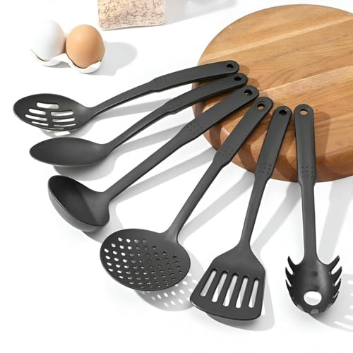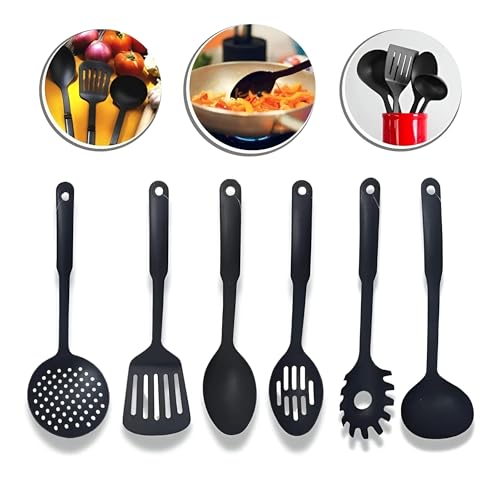 - طقم المطبخ مصنوع من النايلون عالي الجودة مما يضمن المتانة ومقاومة الحرارة. هذه المادة مثالية للطهي حيث أنها لن تخدش أواني الطهي الخاصة بك وسهلة التنظيف مما يجعلها خيارًا عمليًا للاستخدام اليومي.