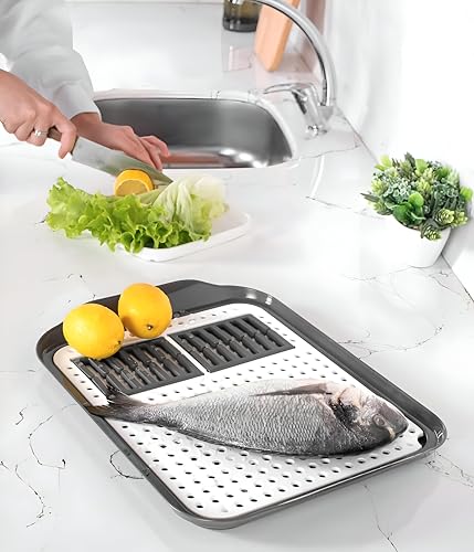 - تم تصميم هذه الأداة المبتكرة كحل 2 في 1. لوح التقطيع العريض مثالي لإعداد الخضروات واللحوم والفواكه، مع استخدامه أيضًا كمصفاة أطباق ومجفف ملائمين. تضمن لك هذه الوظيفة المزدوجة الحصول على كل ما تحتاجه لإعداد الطعام وتنظيفه في متناول يدك!