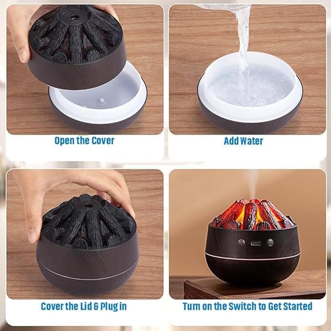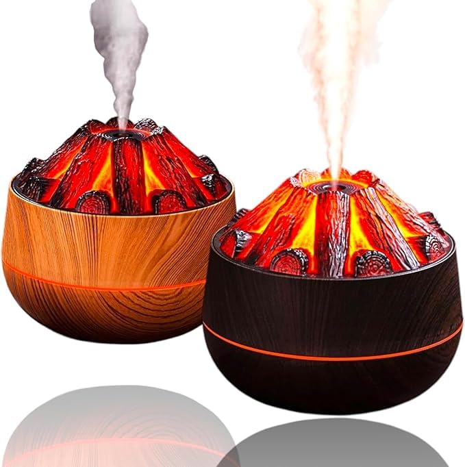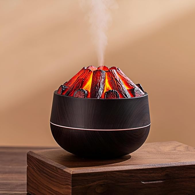 Generic - فواح هواءعطري أساسي مرطب بتصميم بركان: فوّاح هواء هادئ بتصميم فحم وجمر لخلق جو مريح ومهدئ، متعدد الاستخدامات وملون مع كبل يو اس بى للمنازل والمكاتب