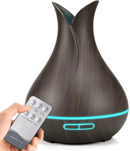 عام - موزع الزيوت العطرية، 400 مل، مرطب هواء بخاصية اطلاق الروائح العلاجية، اضواء ملونة مع وضع قابل للتعديل، جهاز تحكم عن بعد، ايقاف تلقائي، 4 مؤقتات، مجموعة هدايا للمكتب وغرفة النوم (غامق)