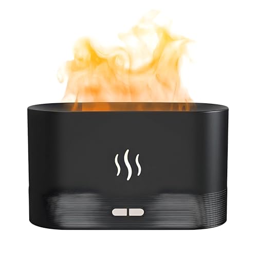 Generic - موزع رائحة للزيوت العطرية - تصميم تأثير اللهب، مرطب مع ضوء ليلي قابل للتعديل في إعدادين للسطوع، خاصية الإغلاق التلقائي عند نفاد الماء، اتصال USB، سعة 180 مل، مقاس 10.1*17.1 سم
