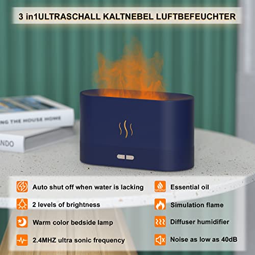 Tiandirenhe - موزع زيوت عطرية بتاثير لهب، جهاز ترطيب رذاذ بارد للمنزل، حماية من الإغلاق التلقائي عند نفاذ الماء، سعة 180 مل (لون أزرق)