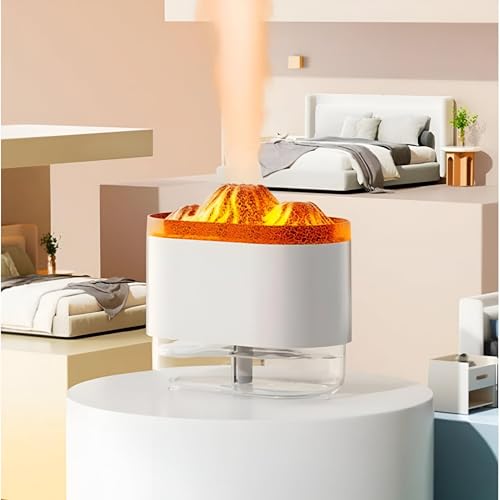 Generic - موزع زيوت عطرية - مرطب هواء بتأثير لهب بركان، خزان مياه سعة 300 مل، وضعين للضباب وخيارات إضاءة دافئة او ملونة، للمنزل وغرفة النوم والمكتب واليوجا والجيم