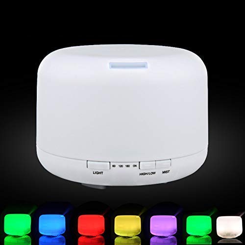 Other - جهاز العلاج العطري سعة 500 مل، جهاز مرطب بالموجات فوق الصوتية واضاءة LED 7 الوان واضاءة ليلية لتنقية الهواء بمؤقت، بخار ناعم