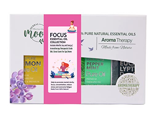 Herbal Mood - مجموعة زيوت عطرية فوكس كوليكشن، علبة هدايا، تحتوي على: زيت الكافور والليمون والنعناع والسترونيلا، تساعد على تحسين التركيز وزيادة الصفاء الذهني
