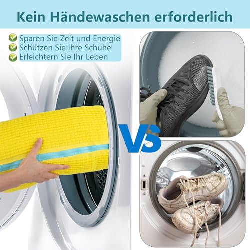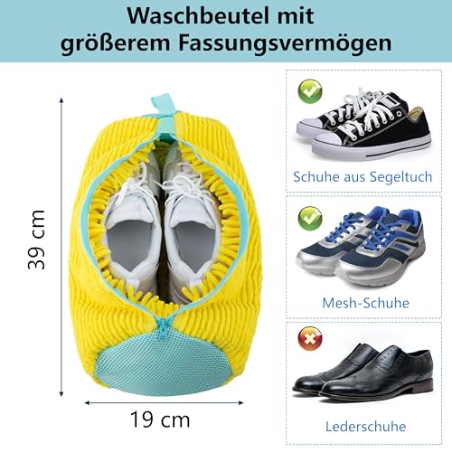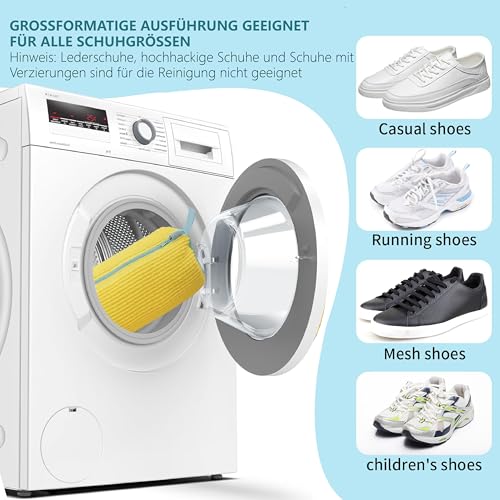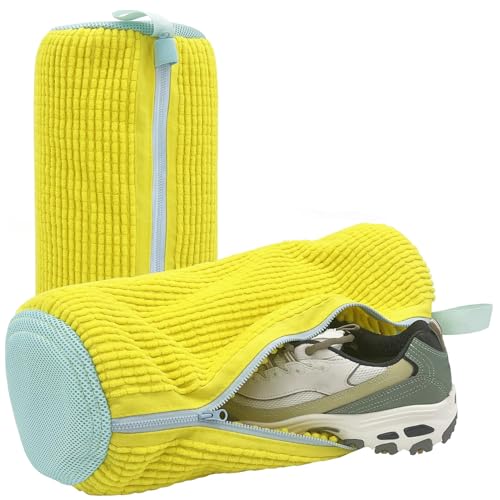 Esshogo - كيس غسيل الاحذية من ايشوجو للغسالة، كيس غسيل الاحذية الرياضية، شبكة غسيل الاحذية في الغسالة، شنطة احذية سميكة، تنظيف 360 درجة، كيس غسيل قابل لاعادة الاستخدام مع سحاب، اصفر