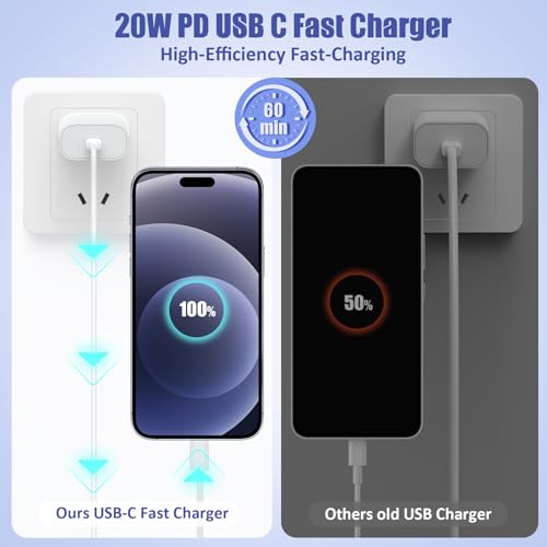- كابل شحن سريع يو اس بي نوع سي: استخدم شاحن يو اس بي نوع سي بي دي لزيادة كفاءة الشحن لهذا الكيبل. شحن ايفون حتى 55% في 30 دقيقة فقط. يشحن أسرع بثلاث مرات من كيبل 2.4 امبير الأصلي