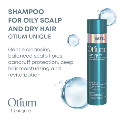 Estel - شامبو اوتيوم يونيك لفروة الرأس الدهنية والشعر الجاف من ايستيل، 250 مل، يزيل الدهون الزائدة والملح بلطف من فروة الرأس، ويعيد توازن الدهون