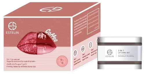 Estelin - مجموعة العناية بالشفاه 3 في 1 بخلاصة القهوة والسكر من ايستلين