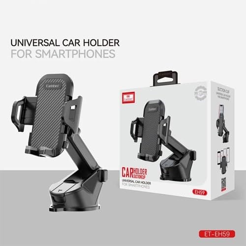 حامل هاتف للسيارة ET-EH59، قاعدة شفط قوية، ذراع طويل قابل للتعديل، دوران 360 درجة، تصميم كربون فايبر، أسود