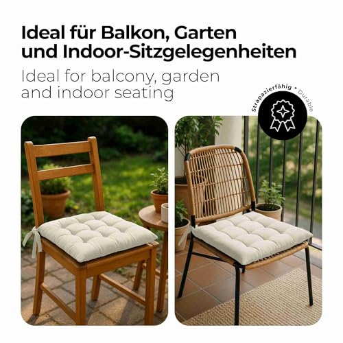 etérea Himmlische Qualität - مخدة مقعد اساسية من ايتيريا 40 × سم للاستخدام الداخلي والخارجي - مجموعة مع اربطة 6 قطع - كريمي مزيج القطن ايتاريا هيملشي كوالت