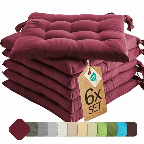 etérea Himmlische Qualität - مخدة مقعد اساسية من ايتيريا 40 × سم للاستخدام الداخلي والخارجي - مجموعة مع اربطة 6 قطع - بوردو مزيج القطن ايتاريا هيملشي كوالت
