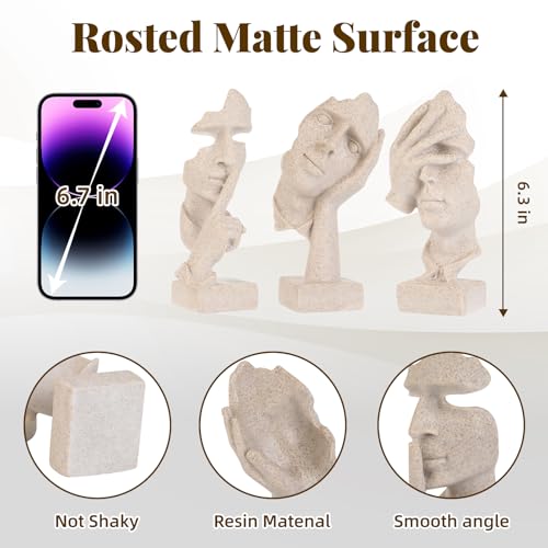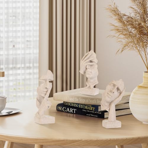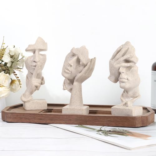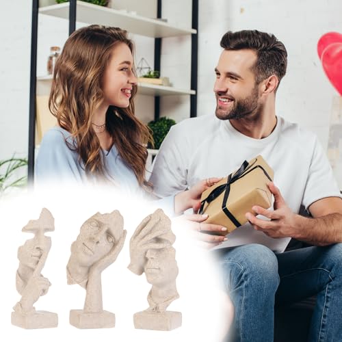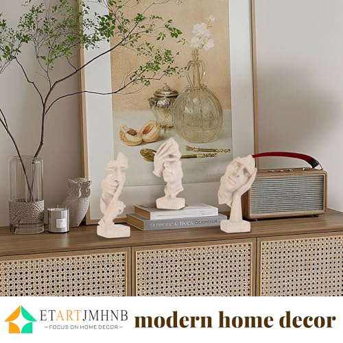 ETARTJMHNB - تماثيل مفكر فنية على شكل وجه تجريدي من ايتارت جيه ام اتش ان بي، تماثيل من الراتنج بتصميم عصري محايد لديكور المنزل والرفوف وغرفة المعيشة وطاولة القهوة والمكتب، هدية للرجال (حجر رملي، بيج) 3 قطع