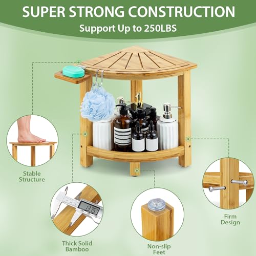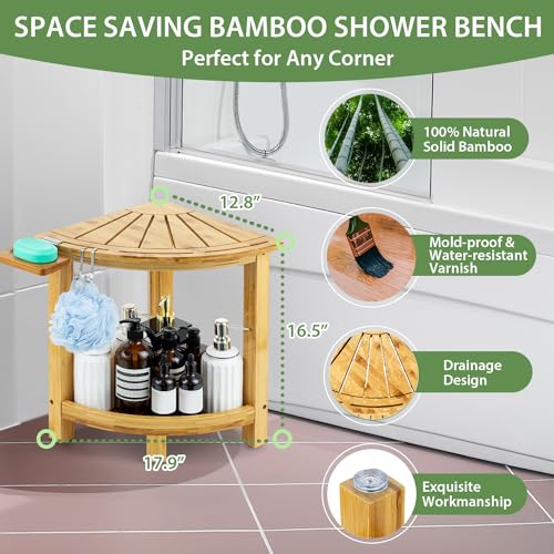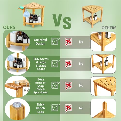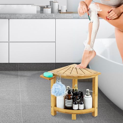 ETECHMART - اي تيك مارت مقعد استحمام من الخيزران للاستحمام الداخلي، مقعد دش مقاوم للماء، مقعد دش لحلاقة الساقين للاستخدام الداخلي والخارجي من الخيزران