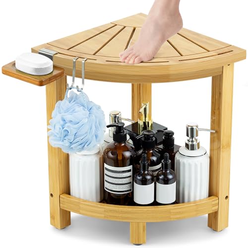 - تصميم زاوية موفر للمساحة: يتميز مقعد الاستحمام المصنوع من الخيزران هذا بشكل صغير بزاوية قائمة يتناسب تمامًا مع الزوايا الصغيرة، مما يجعله مثاليًا إما كمسند قدم للاستحمام لحلاقة الساقين أو مقعد دش في الزاوية. يستخدم هذا التصميم المساحة المتاحة بكفاءة.