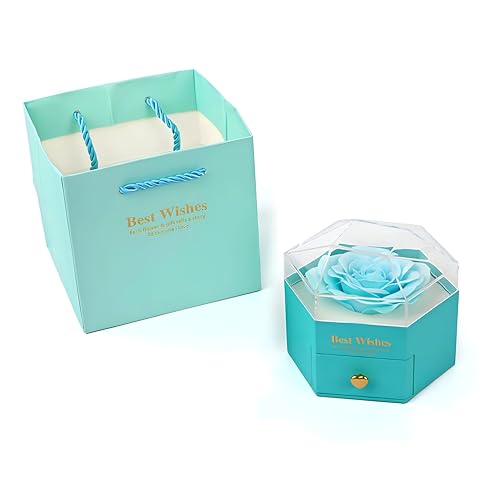 - صندوق المجوهرات سداسي الشكل هذا يتميز بزهور أبدية محفوظة وزهور صابونية، مما يخلق هدية رومانسية ورمزية تجسد الحب والجمال الدائم، مثالية للتعبير عن المودة في المناسبات الخاصة.