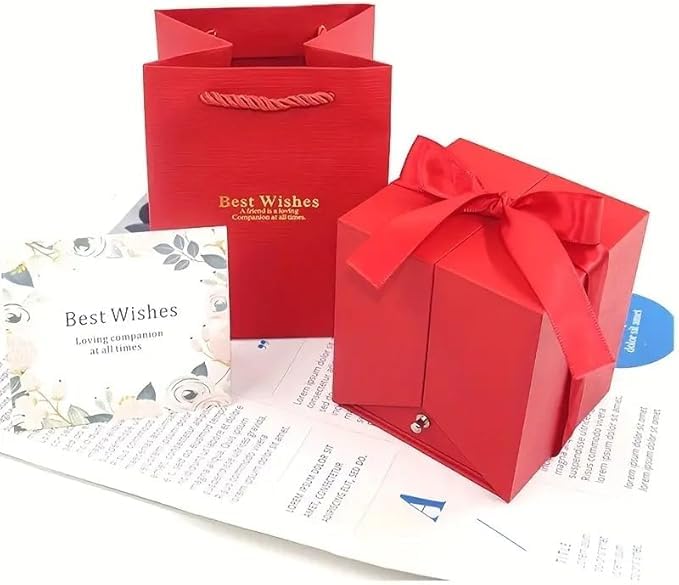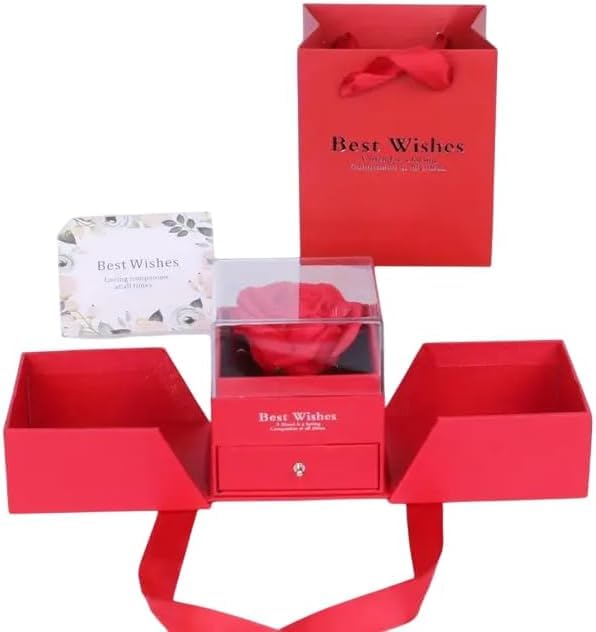 - ღ تصميم دقيق: قطعة واحدة من الوردة الاصطناعية التي لا تذبل في صندوق الهدايا هذا، تمثل "الحب فقط"، ومطبوعة بعبارة "Best wishes" و"A friend is a loving companion at all times". إنها هدية جذابة ومثيرة للإعجاب للنساء لإظهار حبك، عندما تفتحها، ستفاجأ وتفرح وتمنحك عناقًا رائعًا. كما يمكن أن تكون أفكار هدية للأم كهدية عيد ميلاد للأم.
