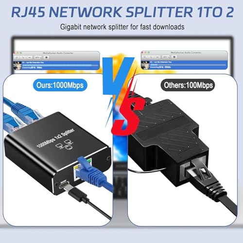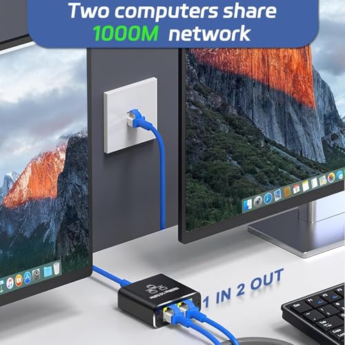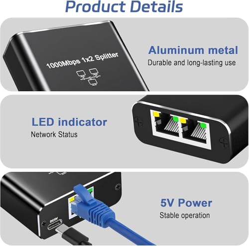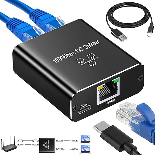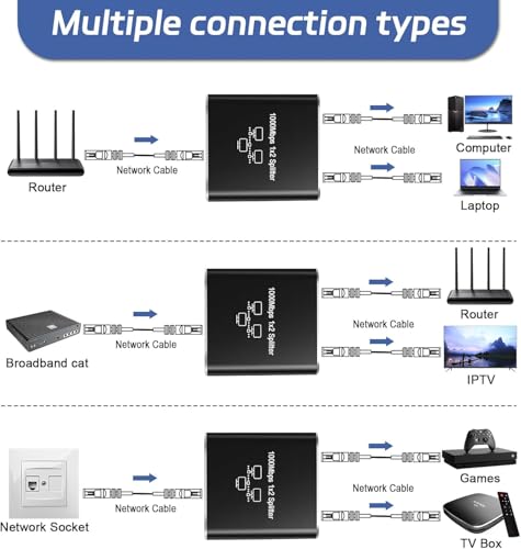 Generic - موزع ايثرنت 1 الى 2 - مقسم شبكة جيجابت ار جيه 45 لانترنت LAN للكمبيوتر وسويتش والراوتر وايه دي اس ال وجهاز فك التشفير والتلفزيون الرقمي (منفذين يعملان في نفس الوقت)