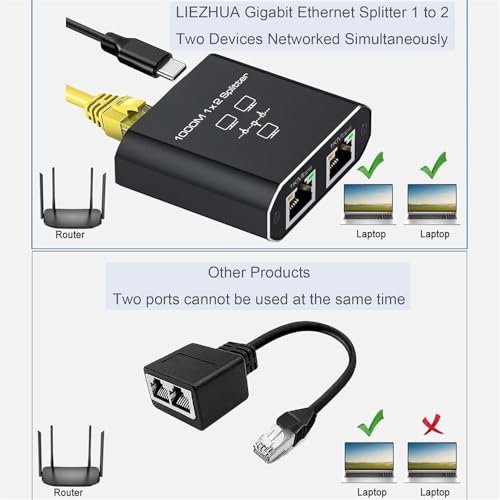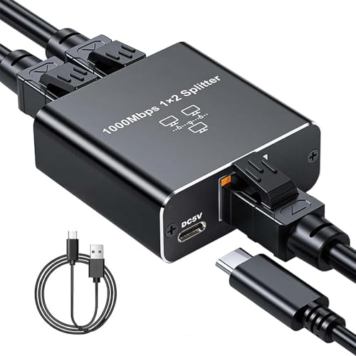 YARDHOBI - موزع إيثرنت 1 إلى 2 عالي السرعة 1000 ميجابت في الثانية، موزع إيثرنت جيجابت، موزع شبكة محلية مع كابل طاقة USB، محول موزع إنترنت RJ45 لكابل Cat5/5e/6/7/8، يدعم تشغيل جهازين بالشبكة في وقت واحد