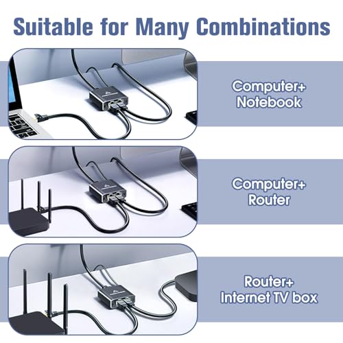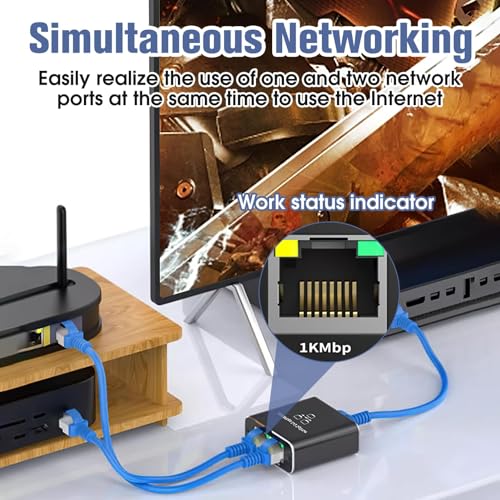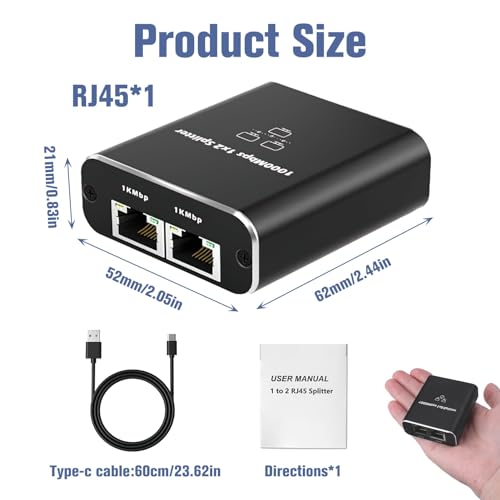 - موزع ايثرنت RJ45 ثنائي الإخراج: قم بتحويل اتصال شبكة واحد إلى مخرجين عالي السرعة باستخدام موزع ايثرنت الخاص بنا، والذي يدعم ما يصل إلى 1000 ميجابت لكل ثانية للاتصال المتزامن بالجهاز. مثالي لتوصيل أجهزة متعددة دون التضحية بالأداء.