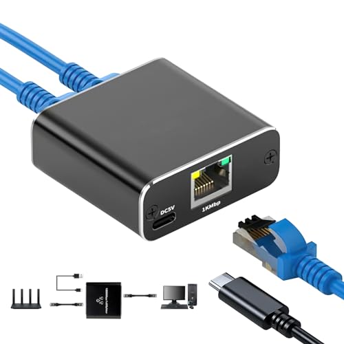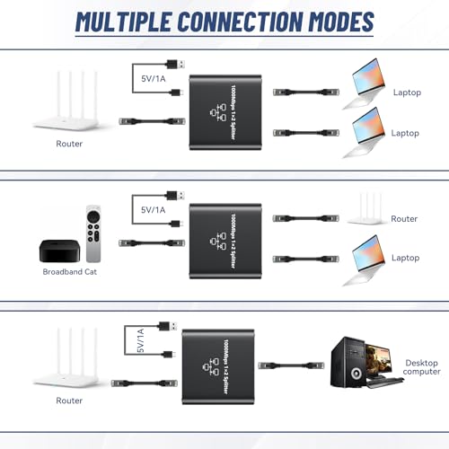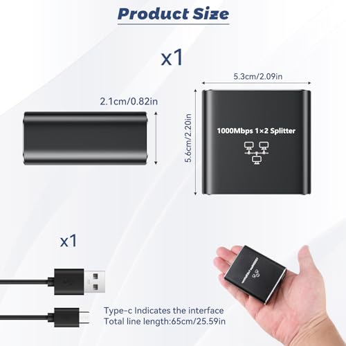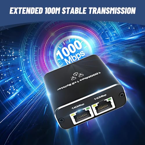 GlamHaven - موزع ايثرنت مقسم ايثرنت 1 إلى 2، مقسم ايثرنت 1000 ميجابت في الثانية، محول شبكة جيجابت للتوصيل والتشغيل عالي السرعة ار جيه 45 كابل طاقة USB محول جيجابت