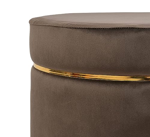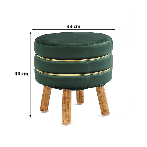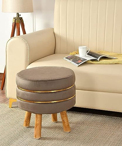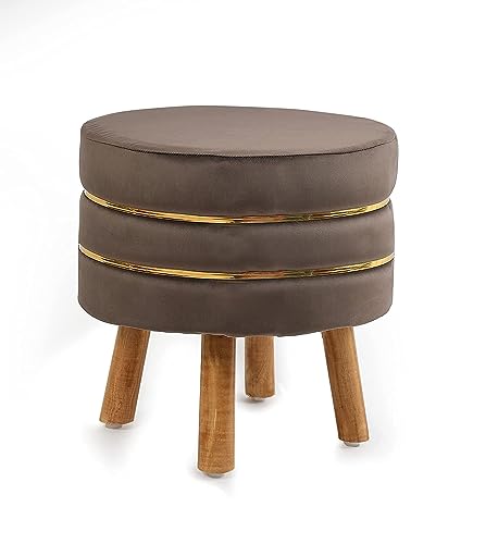ETIQUETTE ART - مقعد جلوس صغير دائري بتصميم عثماني من ايتيكيت ارت لغرفة المعيشة والمكتب، كراسي قدم صغيرة بارجل خشبية مستديرة ومقعد وسادة (بني)