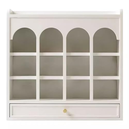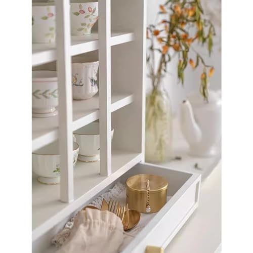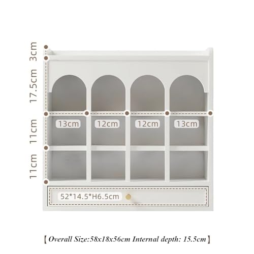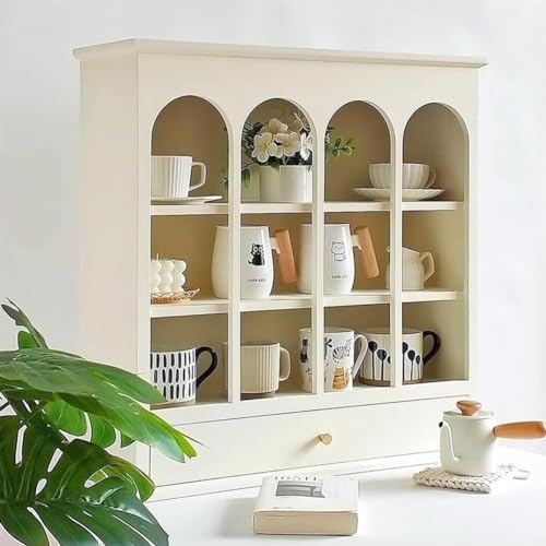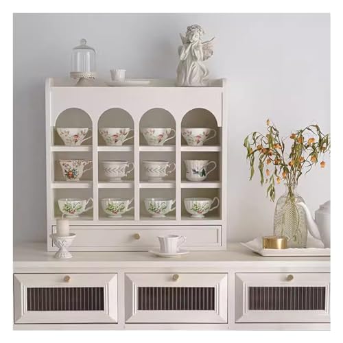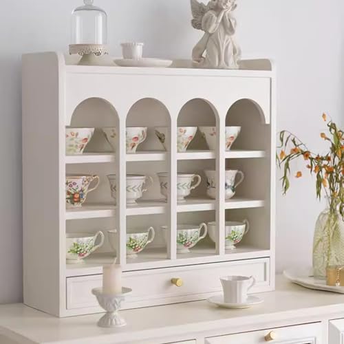 Etlegor - دولاب تخزين خشبي لأكواب القهوة، رفوف عرض التحف الريفية، رف أكواب السفر، حامل أكواب القهوة لسطح المكتب، صندوق ظل مع رف سفلي وأدراج من ايتليجور (اللون: أبيض؛ المقاس: 58 × 18 × 56 سم)